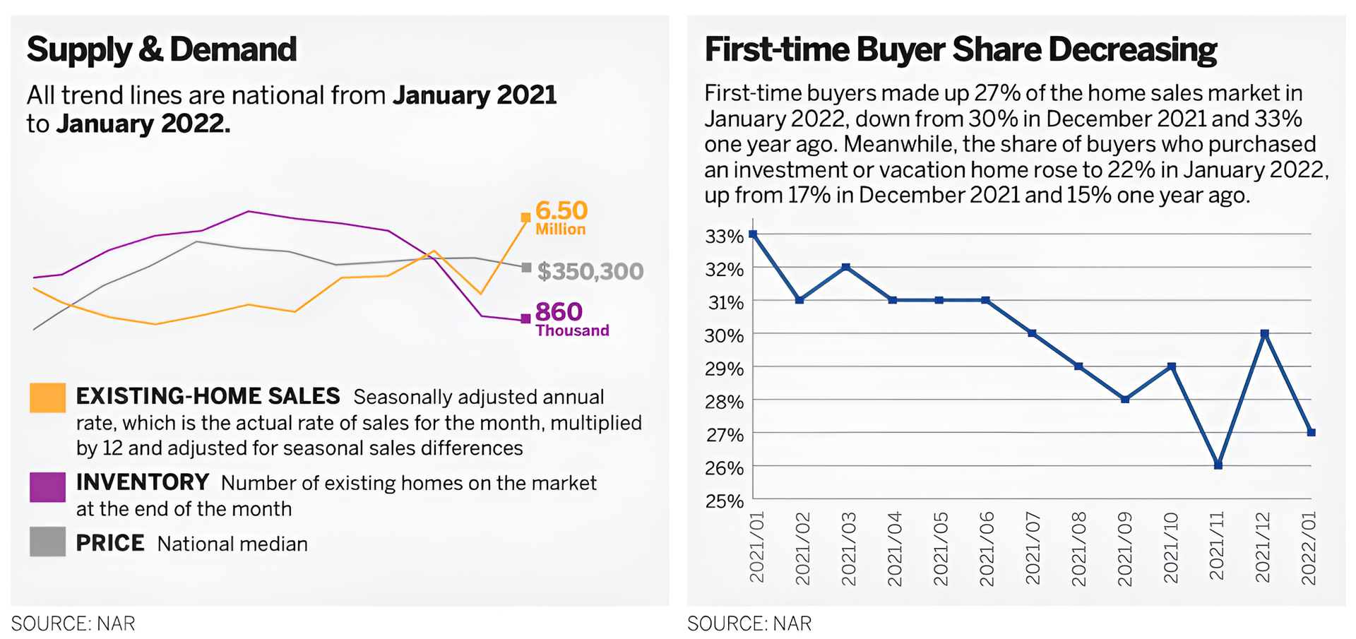 The past two years have been quite exceptional for real estate. Home sales boomed. Home prices rose at the fastest rate in modern times. However, such a strong housing market created growing pains. Inventory shrank to its lowest count ever. Even through the recent winter months, the inventory that has made it onto the market has typically attracted multiple bidders—and, increasingly, investors offering cash. Twenty-two percent of recent transactions were investor purchases, up from 15% a year ago, and 27% of transactions were cash-only deals, up from 19% a year ago. That’s putting a strain on first-time buyers. Moreover, mortgage rates are notably higher as the Federal Reserve moves from a quantitative easing monetary policy, quickly buying up mortgages, to what is in essence a quantitative squeezing that does the opposite. With all this in mind, what’s ahead?