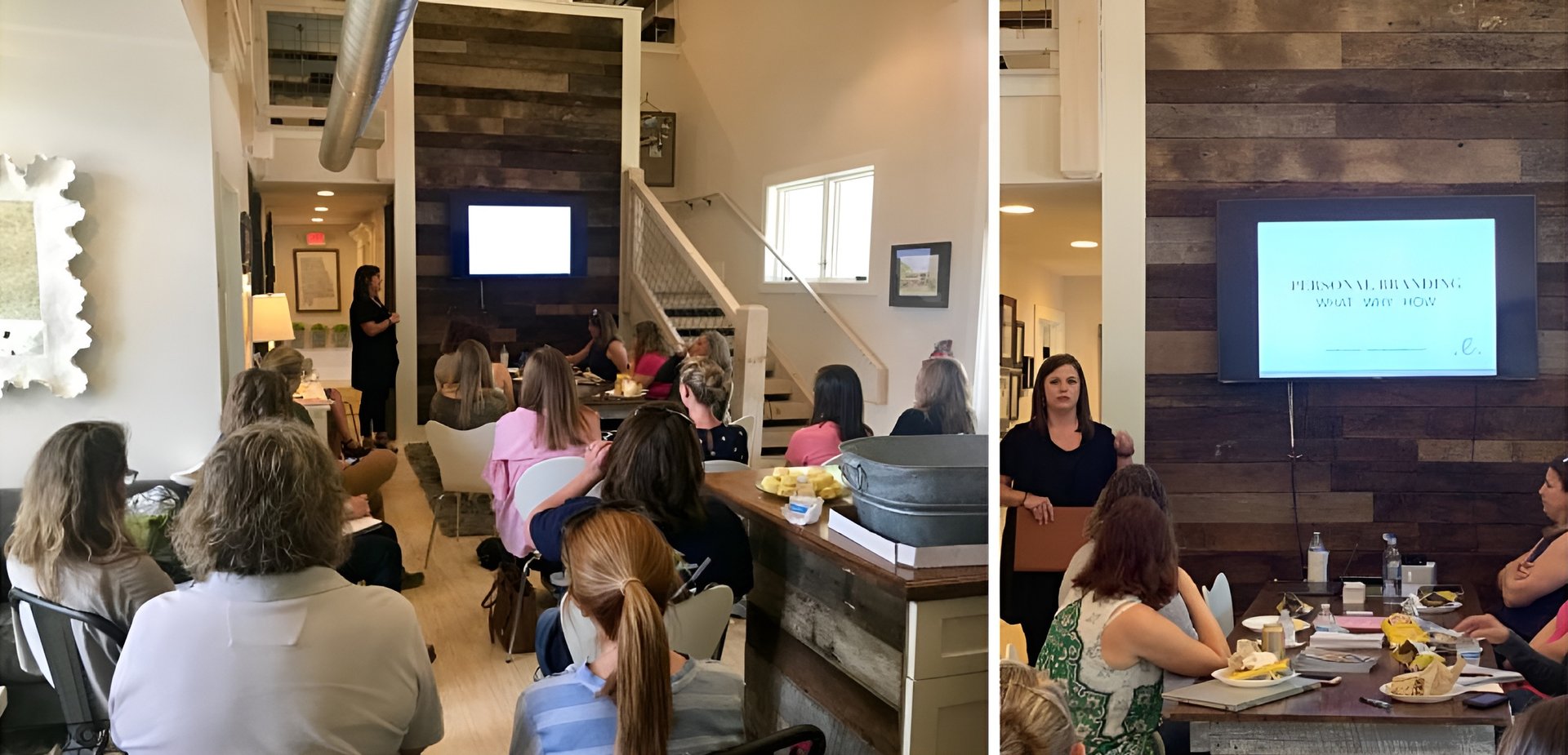 The most recent meeting, which we hosted at our East Alabama office, was a presentation from Eloise Stewart of Eloise Design Company. This local company offers branding and career counseling services to students, and creative design, branding and event services to entrepreneurs. The talk focused on personal branding and design services.